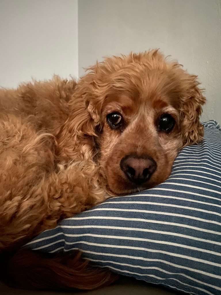 I was beyond reluctant for us to get a dog—at least initially. Already drowning with the responsibilities of motherhood, work, keeping the house somewhat clean, and stocking our ever-emptying cupboards and fridge, I gave Steve an emphatic “no” for a good couple of years before buckling. On January 7, 2017, we stumbled on a pet adoption outside a pet store next to Whole Foods. This absolutely adorable, energetic, rusty-brown cocker spaniel jumped onto all of us, and we were sold. He was already two years old, so he’d passed the hectic puppy years and was looking for a forever home. He’d failed doggy university to become a certified emotional support dog, but our family required no credentials; we just wanted his slobbery kisses, fluffy fur, and unconditional adoration. And he delivered. We named him Bonzo, replacing his former name, Fred “Freddy” Astaire.